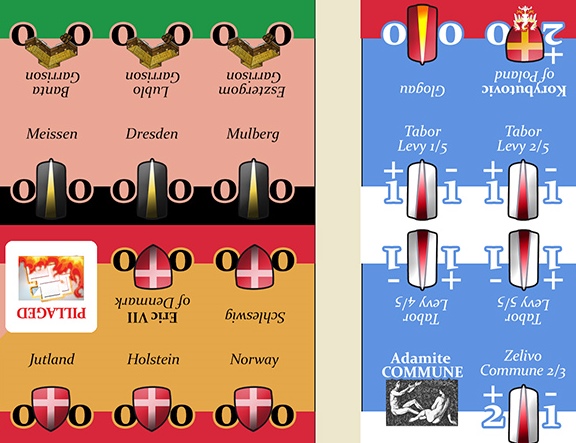 The Imperial player controls those forces under the Emperor and King, Sigismund of Luxembourg. They support the execution of Hus and oppose the taking of Communion with both bread and wine. Royal Crusaders, including both the Catholic minority in Bohemia and the Kingdom of Hungary are also under the direct control of the Imperial player. Papal Crusaders from the Holy Roman Empire (i.e. Germany) are under the indirect control of the Imperial player.